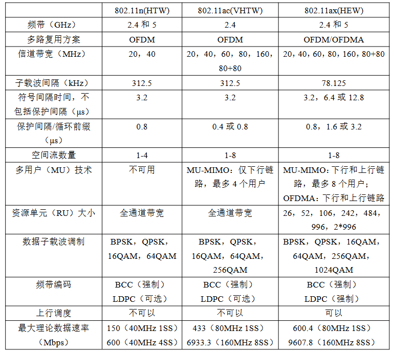 与802.11 ac使用的正交频分复用(OFDM,Orthogonal Frequency Division Multiplexing)技术不同,802.11ax采纳了移动蜂窝网络率先使用的正交频分多址 (OFDMA,Orthogonal Frequency Division Multiple Access)技术,多个终端同一时间并排传输数据,避免了竞争和等待,降低时延的同时也提高了传输效率。
