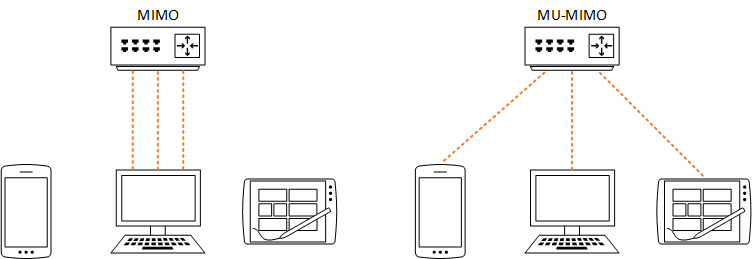 而MU-MIMO技术使AP同一时间和多个终端进行通信,这样就能充分利用AP的总容量。